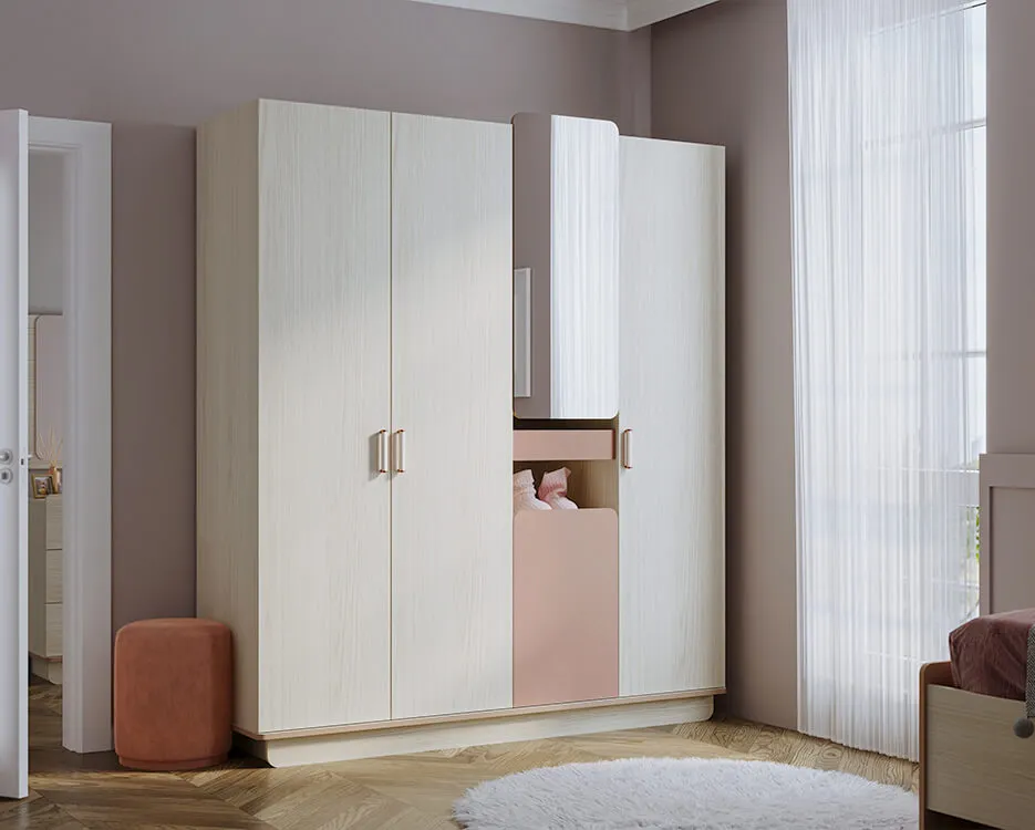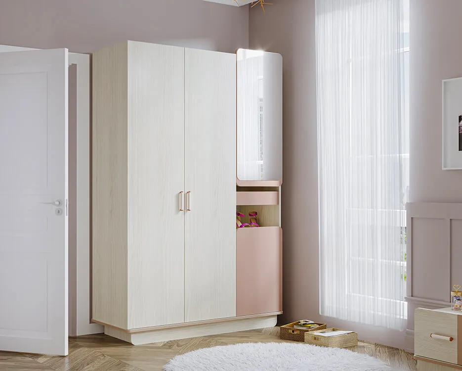 Geniş iç hacmi ve bölmeli yapısıyla kıyafetleri ve eşyaları kolayca yerleştirme imkânı sunan Harmony dolap, dış yüzeyindeki ayna detayıyla hem ferahlık katıyor hem de işlevselliği artırıyor. Açık raf sistemleri, günlük kullanılan eşyalar için pratik bir çözüm sunarken, kapaklı bölmeler düzeni koruyor.