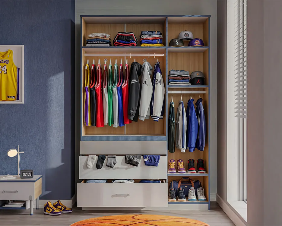 Bu odada ihtiyacın olan her şey düşünüldü! Frenli çekmecelerle sessiz bir kullanım, havalandırma aparatlarıyla kıyafetleri havalandıran hava sirkülasyonu ve ekstra alanlar sunan depolama modülleri…. Kısacası, hayatını kolaylaştıracak tüm akıllı çözümler burada!